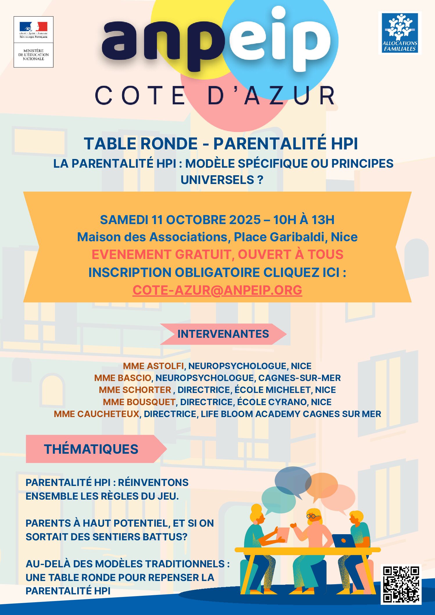18 septembre 2025 Table ronde « Faut-il repenser la parentalité quand nous sommes parents d’enfants HPI ? » En savoir plus 18 septembre 2025 Les olympiades l’ANPEIP CAZ en folie!!!!!! En savoir plus 3 septembre 2025 Nouvelle campagne d’adhésion 2025/2026 En savoir plus 3 septembre 2025 SOUTIEN FINANCIER AUX BILANS HPI En savoir plus 22 juillet 2025 Nouvelle campagne d’ahésion à l’Anpeip Cote d’Azur à partir du 1 septembre! 1 er septembre 2025 En savoir plus 22 mai 2025 8 mai au CUM: La dure vie des surdoués En savoir plus 22 mai 2025 Sortie en Italie du 18 mai En savoir plus 16 avril 2025 Petit mot de notre présidente sur le livre :L’odyssée des Dys En savoir plus 29 mars 2025 Maison des Intelligences et des Talents: MIT En savoir plus 20 mars 2025 Initiation au cirque 16 mars En savoir plus 27 février 2025 Urban Jump des enfants HEUREUX!!!!! En savoir plus 27 février 2025 Fête de Noël 2024!!! En savoir plus 27 février 2025 La fête des Sciences avec l’Anpeip En savoir plus 27 février 2025 Le bonheur d être ensemble En savoir plus 27 février 2025 Rejoignez nous!! En savoir plus 27 février 2025 Témoignage d’un parent En savoir plus